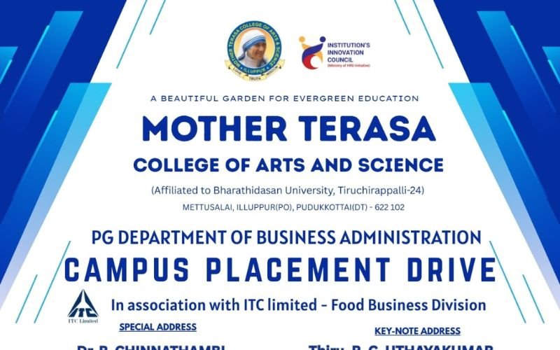 Mother Terasa College of Arts & Science(MTAC) is located in Illuppur on the Highway connecting Pudukkottai and Viralimalai. It is 25 kms from Pudukkottai. The dry and hot fileds of Illuppur have been converted into fields of ever green education by this Trust.The college has a serene, calm and pollution free environment that helps the students in all aspects to concentrate in their studies.
